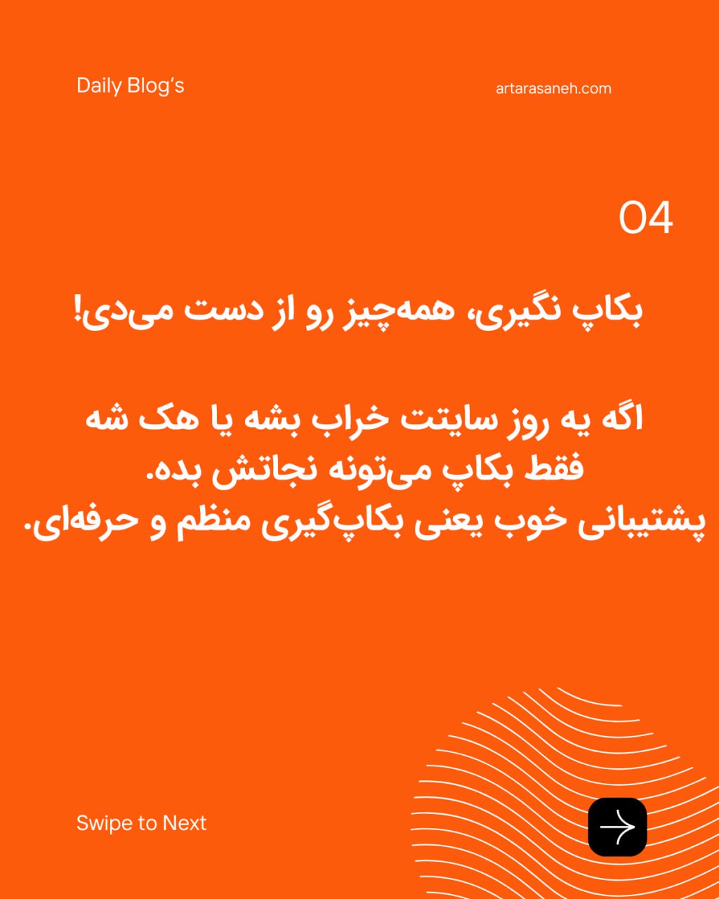 نکته: حتی اگه سایت شما خیلی فعالیت نداره، نداشتن برنامه پشتیبانی حداقل ماهانه میتونه ریسک بزرگی باشه.