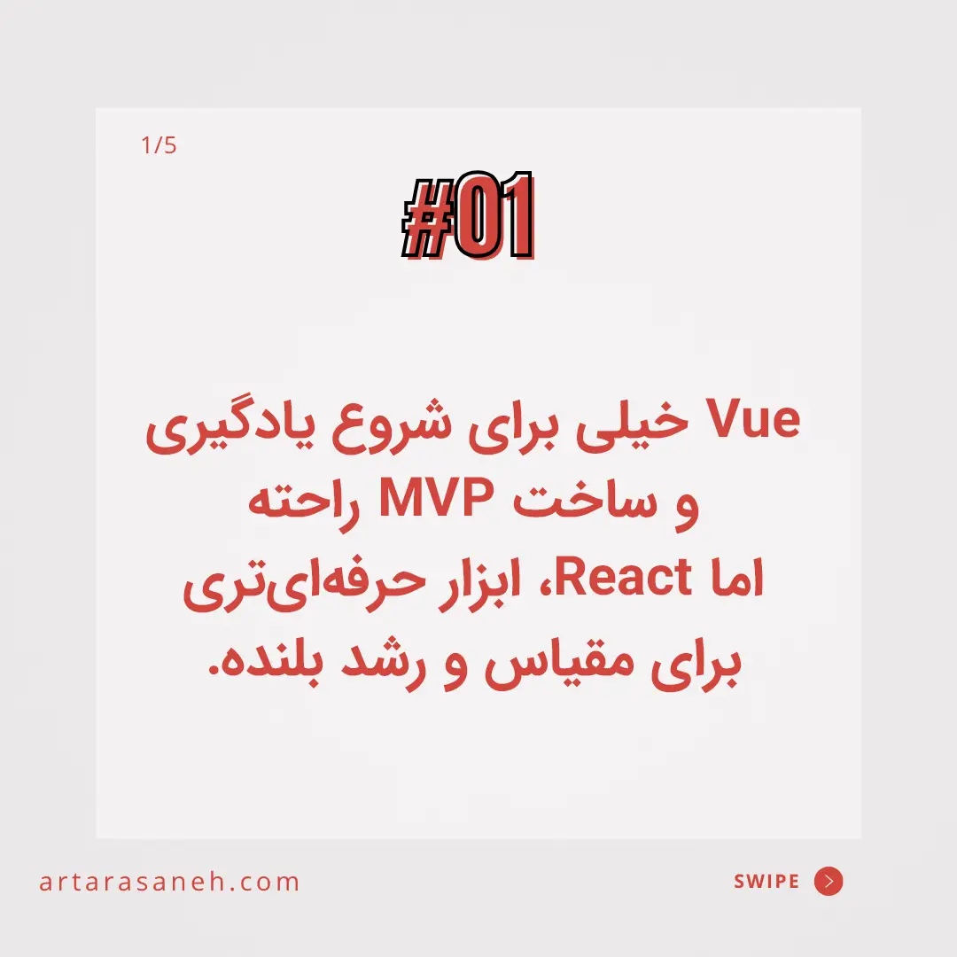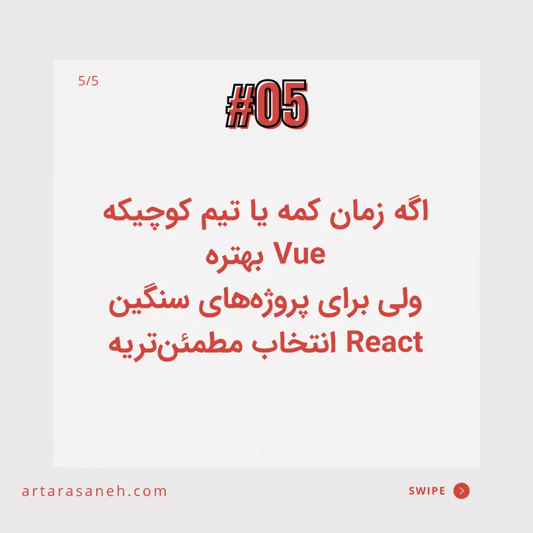- 6 سناریوهای استفاده استراتژیک: کی React انتخاب کنیم، کی Vue؟