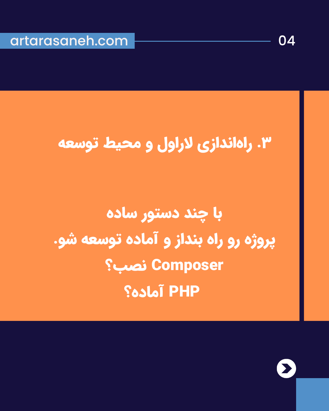 راهنمای جامع برای اجرای حرفهای پروژه طراحی سایت با فریمورک لاراول، از برنامهریزی اولیه تا پیادهسازی و تست نهایی.